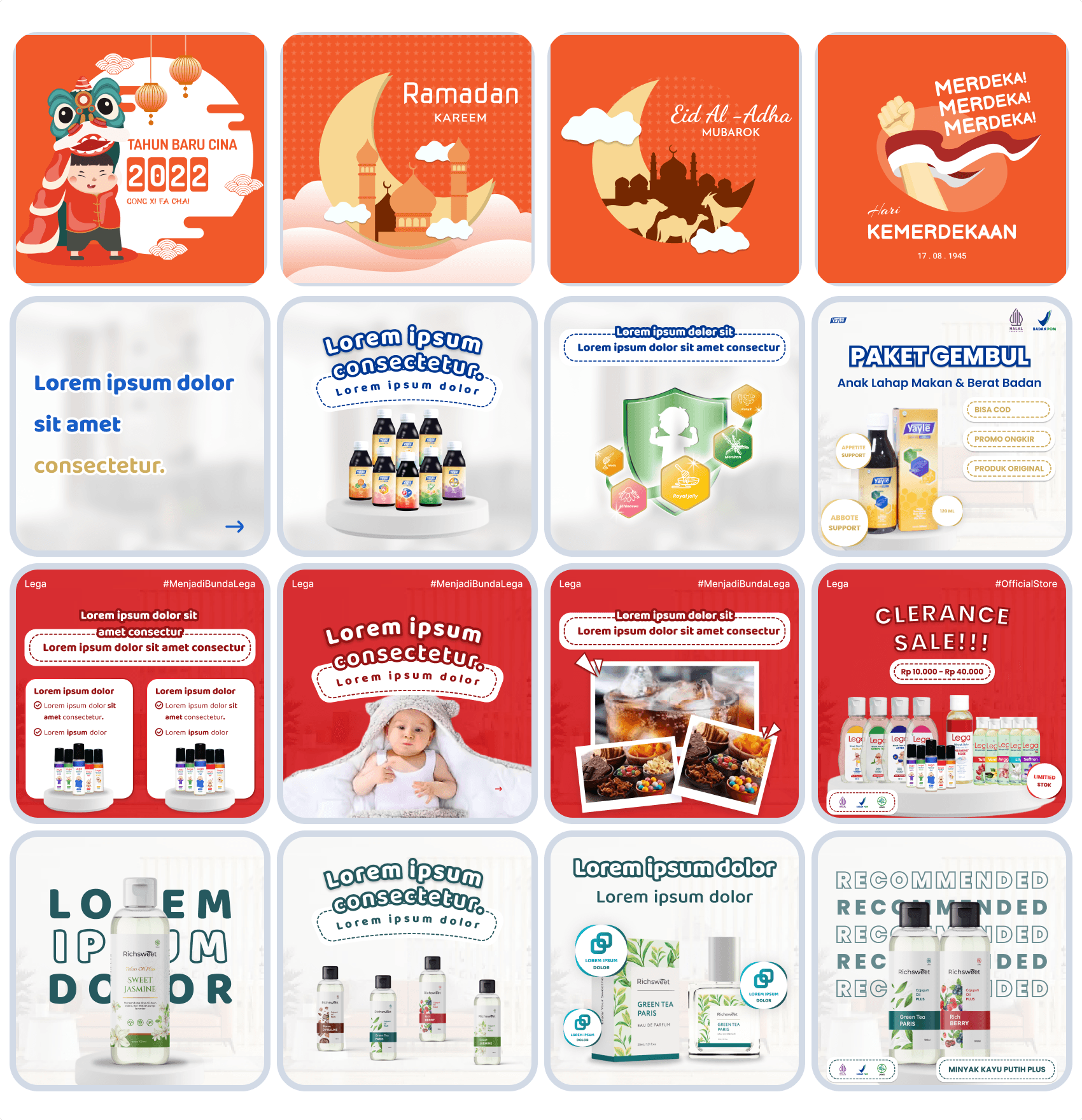 Berikut kumpulan desain sosial media (feed instagram) yang pernah saya buat.